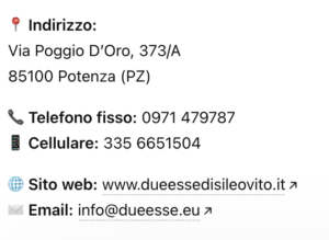 CONTATTI DITTA DUEESSE DI SILEO VITO – POTENZA